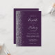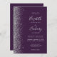 A margem esquerda deste elegante convite de casamento moderno apresenta um design de cintilação de prata. O texto personalizável combina a escrita manual de cinzas prateadas, fontes copperplate e itálico em um fundo roxo escuro. O verso fornece espaço para detalhes do casamento em um fundo roxo escuro sólido, junto com um código QR que os convidados podem digitalizar para visitar seu site e RSVP, o que economiza o custo de imprimir e enviar cartões RSVP separados.