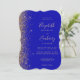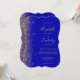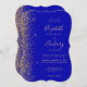 A borda esquerda deste elegante convite de casamento moderno em forma de colchete de tendência apresenta um design de brilho dourado. O texto personalizável combina uma letra pálida de cor dourada, uma letra copperplate e uma letra itálico num fundo azul real. O verso apresenta um design de brilho azul real correspondente e ouro.
