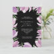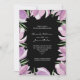 Design de convite para casamento elegante com uma aquarela de flores de magnólia roxa e branca e folhas sobre fundo preto. ITENS CORRESPONDENTES na nossa coleção.