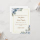 Convide seus convidados para seu dia especial com este cartão de convite para casamento elegante com borda dourada e arranjo floral azul.