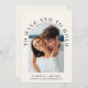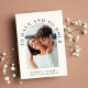 Convite moderno para casamento de cremes leves que mostra sua foto em um arco cercado por "Ter e segurar" em tipografia elegante. Sob sua foto, adicione seus nomes, data do casamento e local. No verso, personalize seu convite em uma simples tipografia.