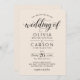 Você está convidado para um casamento incrível! Esses convites para casamento brancos e negros, modernos e quic neutros e calorosos apresentam um design tipográfico na moda negro com acento de escrita de caligrafia e texto elegante personalizado que pode ser personalizado com nomes de noiva e noivo, data do casamento, local da cerimônia e recepção para seguir os detalhes. Por favor, compre a nossa Coleção de Casamentos de Creme Moderno e Script Negro para coordenar designs.
