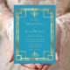 Convites Casamento com Deco de 1920 Dourado Elegante Turquo