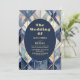 Convites Casamento com Deco de Arte Azul e Dourada