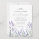 Convite de casamento com flores de campo de lavanda em aquarela elegante e romântica com detalhes no verso.