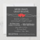 modelo de convite de casamento para a tipografia de chalkboard de campo, branco e preto. Estes convites para casamento de giz têm dois corações vermelhos interligados e "somos loucos. louco apaixonado." proclamação, assim como o tradicional "Matrimônio Santo". Este simples e tradicional convite de casamento de chalkboard adiciona um toque de beleza à moda antiga!