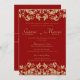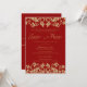 Convites Casamento com Emblem de Damasco Vermelho e Dourado