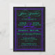 Este convite ousado e brilhante de casamento tema damasco preto, roxo e sutil, incluindo seções especiais para direções e RSVP no verso, tem uma sensação vintage, antiquada, com design de letra antiquada, incluindo elementos elaborados de escrita, uma faixa decorativa, estrelas e uma faixa suave. O convite para o rico é inspirado por posters de design e na moda. O texto diz: "Você é Convidado para o casamento de [nome personalizável] & [nome personalizável] [data personalizável] [hora personalizável]. Por favor, junte-se a nós para uma Celebração Inesquecível". Personalize ainda mais o convite com a cerimônia de casamento e as informações e endereços de recepção, cada um na sua própria caixa com fronteiras pontilhadas.