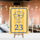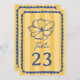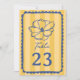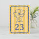 Ilustração floral de arte de linha azul sobre fundo de faixa amarela com texto azul e quadro desenhado à mão.
