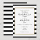 Este convite de casamento elegante apresenta uma borda de falso ouro dourado emoldurando os detalhes do seu casamento em uma tipografia sofisticada sobre um fundo listrado clássico preto e branco. Desenhado por Thisisnotme©