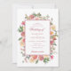 O convite de casamento com um fundo floral de primavera de aquarela macia sobre as flores tem uma caixa branca com duas bordas finas.
