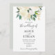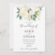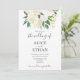 Convite moderno para casamento com flores brancas e neutras de aquarela cortada com sotaques de folhagem dourada (faux). Perfeito para casamentos de primavera e jardim.