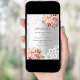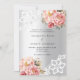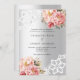 Para um casamento elegante e romântico. Um fundo de aspecto fino prateado decorado com flores, rosas e rendas de ouro rosa e rosa. Personalize e adicione seus nomes e detalhes.