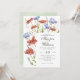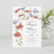 Convite romântico de casamento com flores de prados de aquarela/ flores silvestres e grama. Flores como papoilas vermelhas e flores azuis.