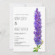 Convites Casamento com flores de delfinium roxas de lavanda