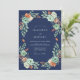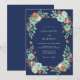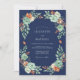 Este design elegante apresenta um fundo azul naval profundo adornado com um arranjo botânico exuberante. Suculentas de cor verde menta suave e rosas de tom pêssego criam um contraste sofisticado contra a base escura. Folhas terracota terrosas e folhas de salvia verde adicionam um toque de charme rústico à composição romântica. O estilo pictórico evoca uma sensação de beleza natural e graça atemporal.