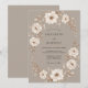 Uma paleta suave bege cria um clima romântico com delicadas flores brancas e folhagens pendentes. Este design evoca uma elegância atemporal, perfeita para uma união sofisticada.