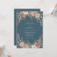 Este design romântico apresenta um arranjo floral suave e pintado em tons de rosa e creme desbotados contra um fundo azul desbotado profundo. Botânicos delicados e folhagens criam uma atmosfera etérea e elegante, perfeita para um evento sofisticado.