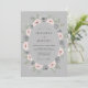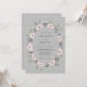 Um arranjo floral suave e cinza envolve um motivo oval central. Flores delicadas e folhagens criam uma atmosfera elegante e romântica, perfeita para uma celebração sofisticada. Este design evoca um senso de charme clássico e beleza discreta.