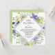 Um convite de casamento quadrado único com um belo estilo 'boho', este design apresenta flores silvestres em tons mistos de púrpura, azul, amarelo e branco com verde parecido com cipós como sotaque. As flores rodeiam um quadro quadrado diagonal com algumas pétalas derramando sobre o quadro no estilo sem carateres. O reverso deste convite é uma sombra de verde correspondente. Você pode alterar esta cor para qualquer outra cor (incluindo branco) selecionando "personalizar" e selecionando uma cor de fundo diferente. Substitua o texto de exemplo mostrado no design com os detalhes do seu casamento. Você pode adicionar ou remover linhas de texto e alterar as fontes selecionando "personalizar". Se seu texto precisar de reposicionamento após o fazer das alterações, basta deslizá-lo no lugar usando o mouse ou o ponteiro.