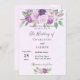Um fundo violeta, lavanda, de cor aquosa. Decorado com flores violetas e púrpuras de cor aquosa e verde. Personalize e adicione seus nomes e detalhes da festa.