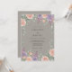 Rosas rosa suave e delicadas flores de lilás são artisticamente arranjadas ao longo das bordas, criando uma estética romântica e etérea. A folhagem sutil adiciona profundidade, evocando uma atmosfera serena e encantadora para uma ocasião especial. O estilo de aquarela suave realça o clima geral de elegância refinada.