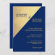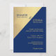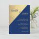 Convites de casamento elegantes e modernos em azul marinho e azul esfarrapado de folha de ouro ombre design. A inscrição em ouro e azul e fundo azul-marinho profundo pode ser alterada para qualquer cor escolhida. Personalize estas modelos de cartão com suas informações. A parte traseira da carta tem um selo falso de folha de ouro com nomes de noiva e noiva com sobrenome inicial. Contato do designer para outras variações.