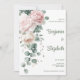 Um pastel de aquarela colorido flor com lindos peões cor-de-rosa e hortelã verde e eucalipto deixa o Convite de Casamento é uma escolha perfeita para casais que buscam um toque romântico em seu grande dia. Este quadro de flor de aquarela pintado à mão rodeia seus detalhes de casamento. Dê aos seus convidados um maravilhoso primeiro vislumbre do seu casamento para vir este convite será uma adição fantástica aos seus eventos de casamento.