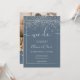 Moderno confete de folha prateada, autópsias de fotos de script de quadro geométrico casamento, adicione 4 de sua foto de casal favorita, um convite de casamento simples, minimalista e chic, adicione suas iniciais no verso. A cor azul empoeirada é totalmente editável.
