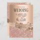 Linda folha de rosa ouro-ouro-reluzente parece uma amostra e um convite de casamento com campos de texto de ambos os lados, está disponível rsvp correspondente.