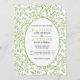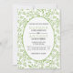 Verde verde moderno deixa modelo de convite para casamento. Este convite de casamento retangular apresenta uma borda feita de um padrão de folhas e sua redação em uma estrutura branca com contorno verde.