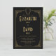 Este convite de casamento art déco preto e dourado dos anos 1920 pode ser personalizado com suas informações em tipografia elegante e foto no verso. Criado por Thisisnotme©