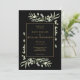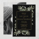 Convites Casamento com Foto de Folhagens Preto e Dourado