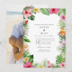 Convites de casamento com design de borda de flor tropical colorida que são perfeitos para o seu casamento de destino na praia. Adicione os detalhes do seu casamento na frente e uma foto no verso.