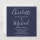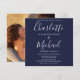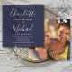 Com destaque para nomes em estilo de assinatura elegante juntamente com a foto escolhida, este convite de casamento elegante pode ser personalizado com os detalhes do seu casamento em tipografia moderna sobre um fundo azul-marinho. Você pode personalizar a cor do fundo para combinar com o tema do seu casamento. Desenhado por Thisisnotme©