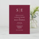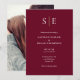 Este convite de casamento minimalista chique pode ser personalizado com as iniciais do seu monograma e detalhes do dia do casamento em um fundo borgonha. Com sua foto especial no verso. Criado por Thisisnotme©