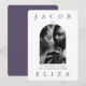 O convite para casamento de fotos violetas elegantes apresenta um layout moderno com tipografia ousada e um retorno violento do convite editável para sua cor personalizada!