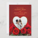 Celebre a sua história de amor com este romântico convite ao casamento vermelho, com uma fotografia do casal em forma de coração. Adorado com um buquê rosa vermelha e um roteiro elegante de ouro, este design é perfeito para casamentos modernos com um toque pessoal. Personalize-o com sua foto, nomes e detalhes do evento — ideal para noivados, celebrações de casamento ou renovações de votos.