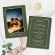 Faça uma impressão duradoura com nosso moderno plano verde-oliva simples e a caligrafia branca com o Cartão de Convite Foto para Casamento de Casal. Celebre a sua história de amor com um toque de elegância, ao mesmo tempo que tem a liberdade de personalizar a cor de fundo para complementar perfeitamente o seu tema de casamento. Nosso convite elegante para casamento cuidadosamente trabalhado mostra lindamente sua foto favorita, capturando a essência de sua história de amor. O design minimalista garante que a sua imagem toma o palco central, enquanto os tons suaves e quentes do fundo verde-oliva adicionam um toque de elegância subestimada. O nosso cartão não só oferece uma estética na moda, como também permite personalizá-la para o conteúdo do seu coração. Escolha sua cor ou tema de fundo preferido para combinar com sua paleta de casamento e crie um convite de casamento único e personalizado Encomenda seus convites personalizados de casamento hoje e deixe seus convidados testemunharem a beleza de seu próximo sindicato.