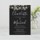 Com luzes bonito de cordas e nomes de estilo de assinatura, este elegante convite de casamento pode ser personalizado com os detalhes do seu dia de casamento em letras brancas chic em um fundo preto com a sua foto escolhida no verso. Projetado por Thisnotme©