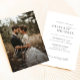 Este Convite Fotográfico para Casamento de Script Russo Chic, com um fundo florestal com uma atmosfera serena e romântica enfatizada pela paleta colorida mutada e pelo roteiro elegante.