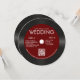 Burgundy vermelho escuro, convite de casamento para gravação de vinil retrô com foto atrás. Personalize-o adicionando sua data de casamento, hora e detalhes. Excelente para um aspecto e um sentimento casamentos vintage.