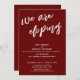 A distinção deste conjunto se deve à fonte moderna de escrita manual utilizada para as frases de destaque. Nesta peça, a fonte manuscrita foi usada para criar um gráfico que representa as palavras "we are eloping". Utilize os campos do modelo para adicionar seus detalhes pessoais e tornar este design moderno e único. O fundo sólido pode ser alterado para qualquer cor de sua preferência. Por favor, entre em contato para qualquer solicitação especial ou para obter ajuda na personalização. // 100 //