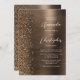 A borda esquerda deste elegante convite de casamento moderno apresenta uma borda falsa de bronze. O texto personalizável combina manuscrito branco, fontes em copperplate e itálico em um fundo de metal piscado em falso em bronze. O lado inverso apresenta um design de metal embebido e brilhante correspondente.