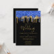 Convites Casamento com Glitter Dourado Azul Elegante Azul
