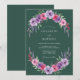 Este design encantador apresenta uma disposição circular de flores em aquarela em tons de lilás, rosa e lavanda. Ramalhetes delicados de verde e lavanda adicionam um toque de charme caprichoso ao fundo esmeralda profundo, evocando um clima romântico e etéreo.