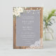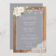 Estamos tão felizes com esta cinza formal tradicional, convite para fotos de casamento. Não foi fácil aparecer com uma design de luz rústica que sentimos ter atendido nossas demandas estéticas, mas então fizemos isso, e agora estamos apaixonados! Apresentando tipografia de guiões com letra de mão, florais brancos de aquarela, textura de madeira de casca de mel, renda francesa de Alençon falsa e luzes de cordas brilhantes e quentes. Parte de uma suíte de casamento que esperamos que você ame tanto quanto nós: https://www.zazzle.com/collections/trendy_light_gray_rustic_wood_lace_floral_wedding-119389924642700932 Copyright Elegant Invites, todos os direitos reservados.