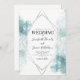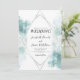 Design apresenta a estrutura geométrica do fio deslizante e a aquarela azul, o convite elegante de casamento moderno apresenta uma aquarela leve com falso quadro de folha de prata em forma geométrica. Personalize com seus detalhes de casamento em modernos escritos à mão e letras sans serif tradicionais. Convites em branco plano inverso.