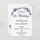 Um design elegante e vintage com violetas roxas, eucalipto e lavanda pintados em cor d'água romântica. CONVITES DE CASAMENTO -
