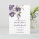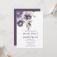Pêonias de aquarela em roxo, lavanda com muitos sopros de verde acentos de casamento. A parte de trás do cartão é roxo escuro. As caixas de texto são fáceis de personalizar com suas próprias informações. O texto é uma mistura de fontes modernas e ornamentados de caligrafia.